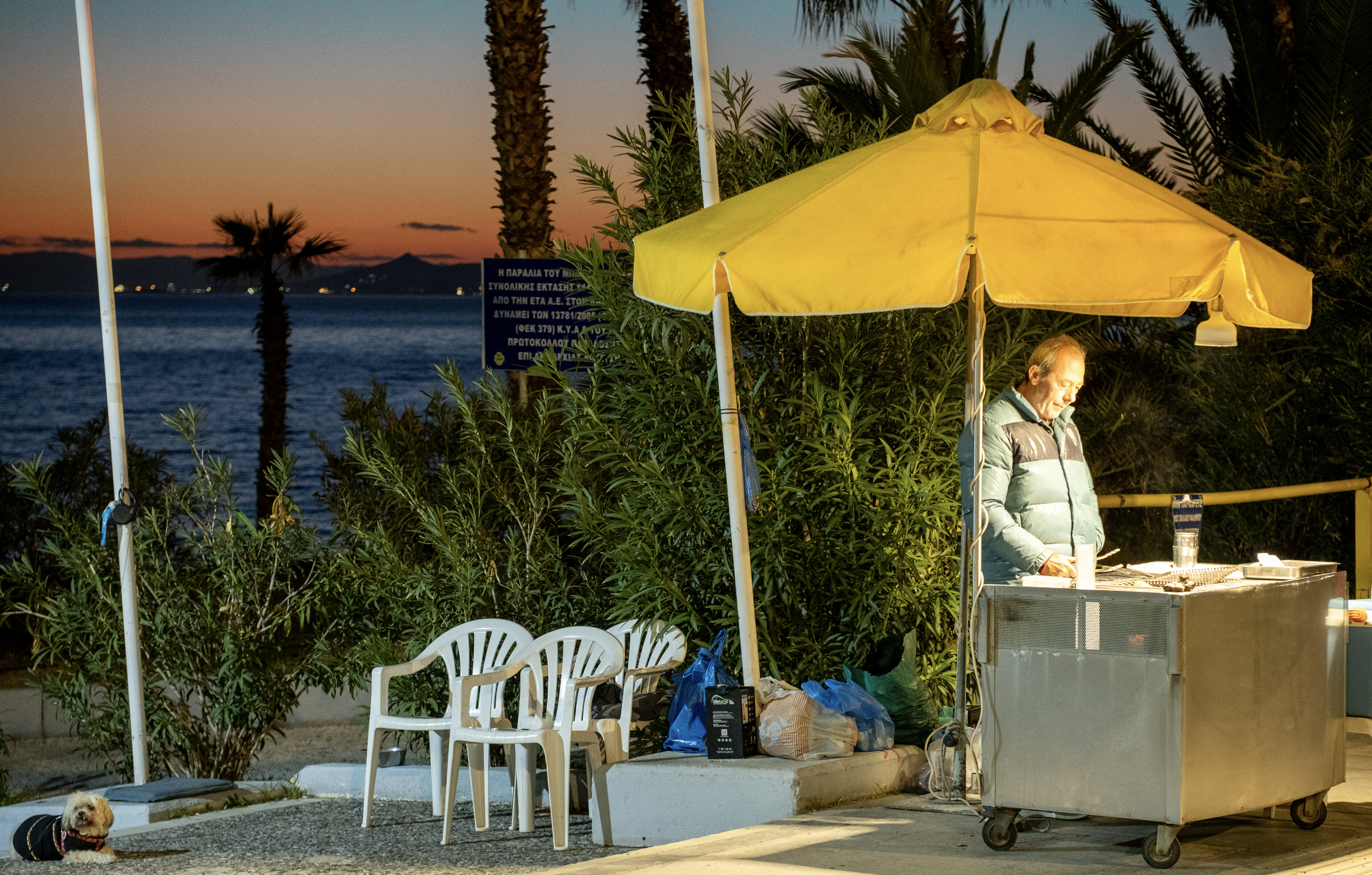 In this photo series, I wanted to show people’s (and my own) relationship with the sea. The moment I decided to move to Athens, I was looking at the sea in this neighborhood, Palaio Faliro. Psychologically, I had hit rock bottom, yet the shore still gave me a sense of optimism. I told myself, “I can heal here.”